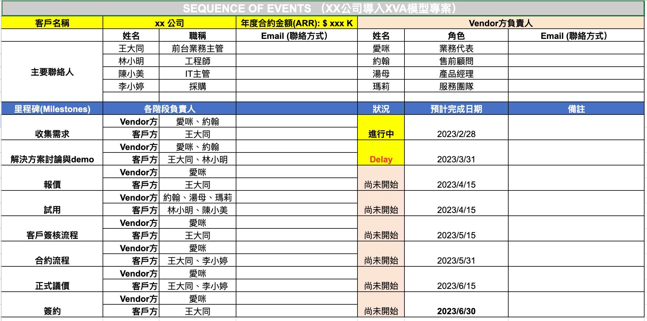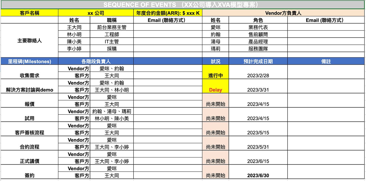 在每個milestone旁邊加上「客戶負責人」,